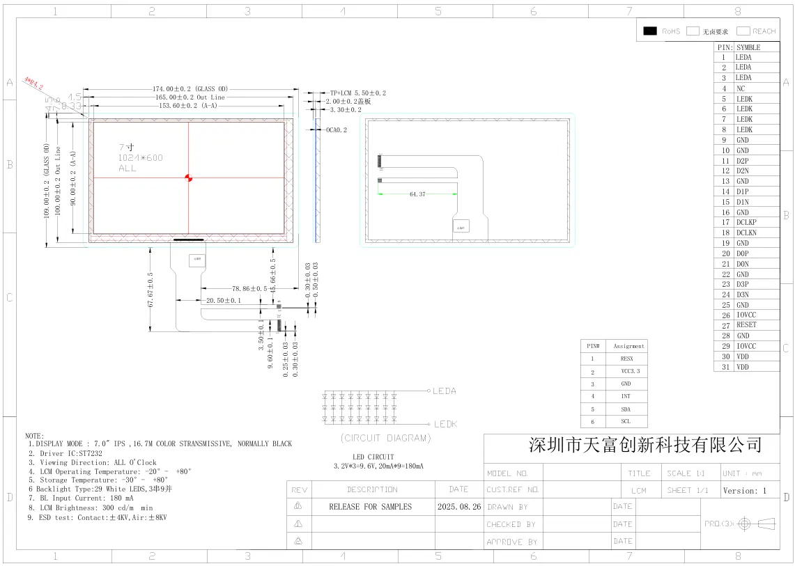 ترکیبی عالی از عملکرد و دوام را تجربه کنید. ماژول صفحه نمایش لمسی نازک 7.0 اینچی 350 نیت ضد تابش IPS ما دارای طیف رنگی عالی و زاویه دید وسیع 80 درجه است و از نمایش فوق العاده محتوای شما اطمینان می دهد.