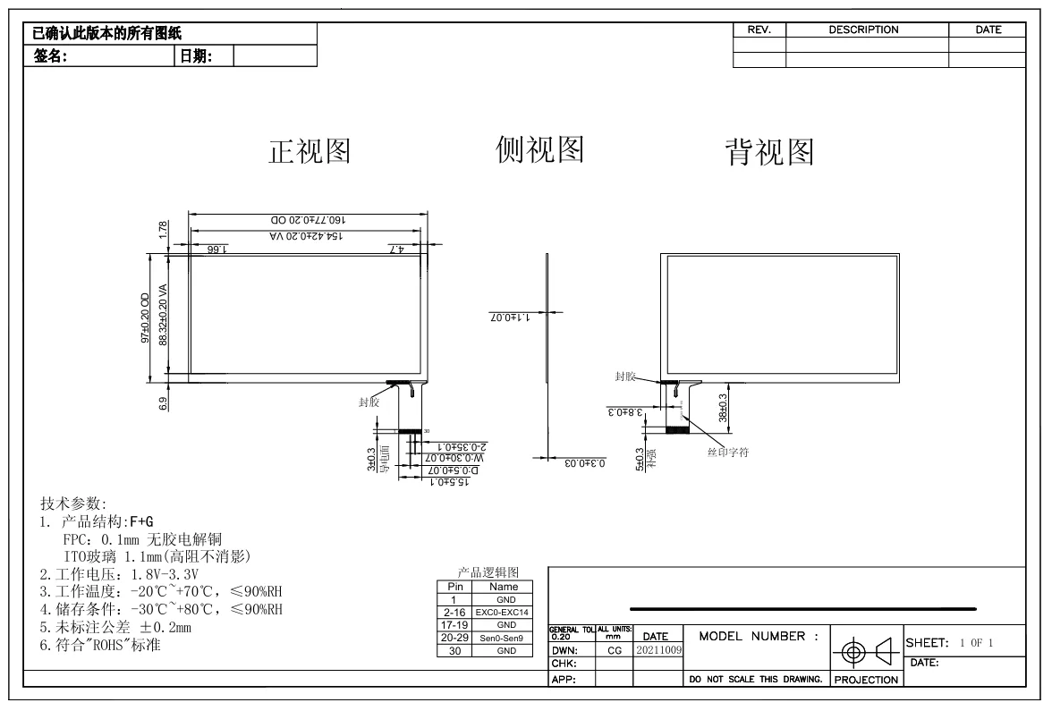 97.00 × 160.77 × 1.10 میلی متر (طرح کلی حسگر؛ تحمل: ± 0.20 میلی متر)